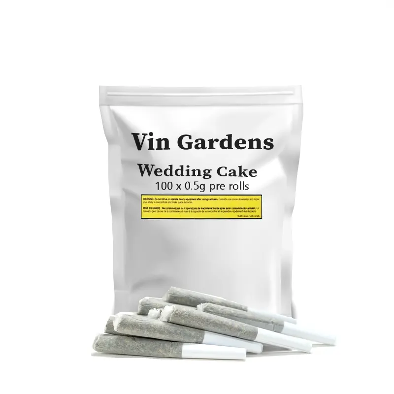 We wrap these amazing buds in very thin paper from France. This paper is the best for a smooth burn. That means every time you light up a Vin Gardens Wedding Cake pre-roll, it burns evenly and nicely, making your experience really enjoyable.